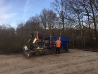 Biddinghuizen - 3 maart 2017. Na het verwijderen van de minibaan en het afgraven van de grond werd de zandlaag aangebracht.