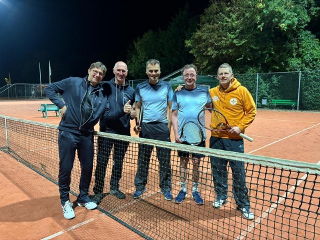 De mannen van BAS1 Tennis (vrijdagavond - najaarscompetitie) wisten het stiekem al: de titel was binnen!