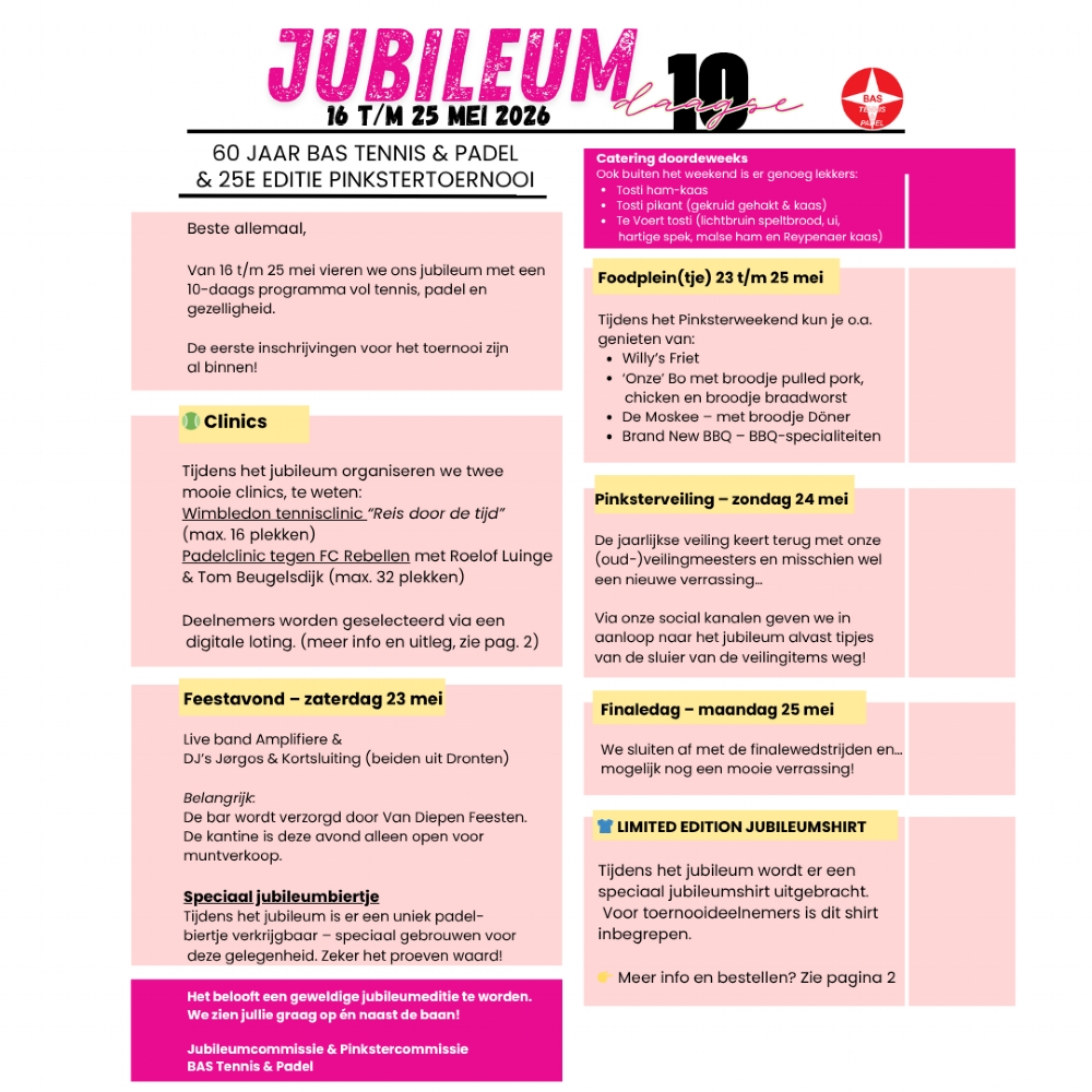 Vier het mee! Jubileum10-daagse: 60 jaar BAS & 25e Pinkstertoernooi!